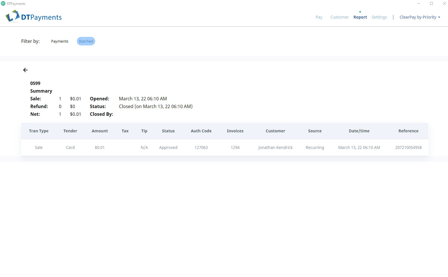 - Opened - date and time stamp of when the batch was opened or when the first transaction was added automatically